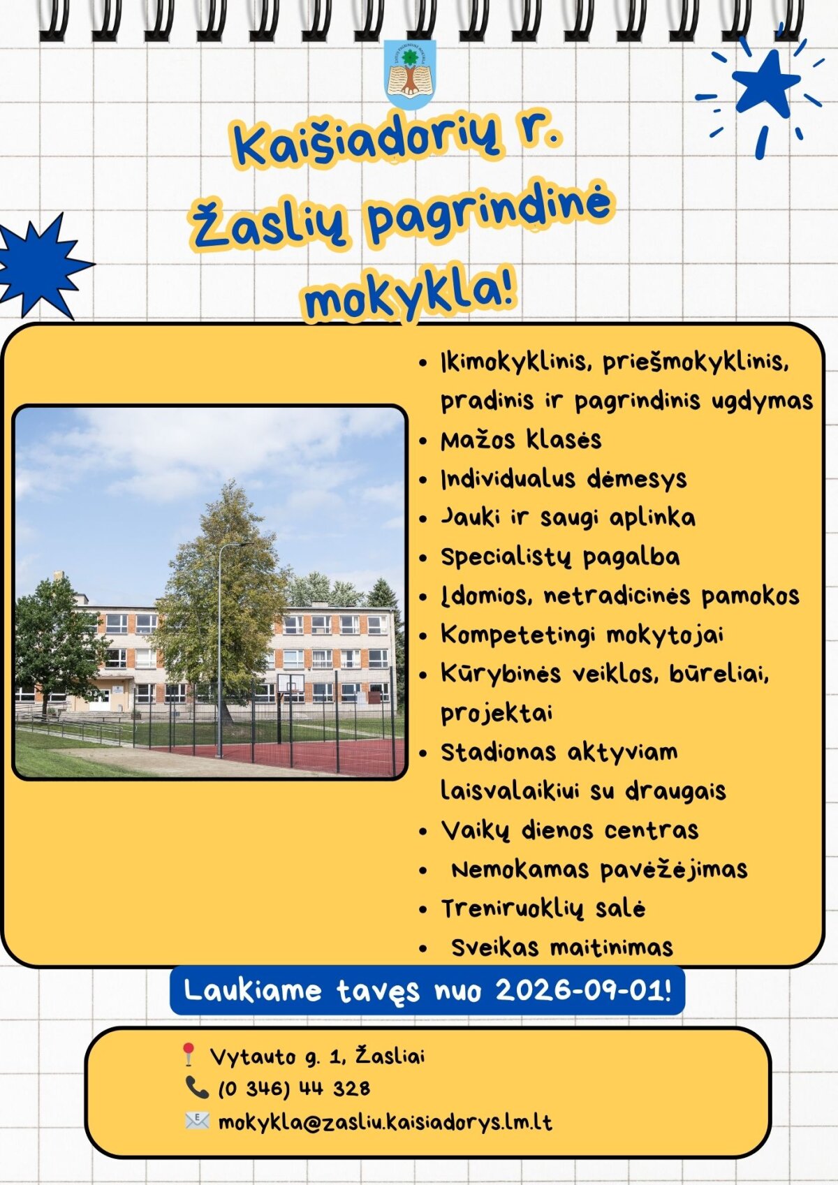 Kviečiame mokytis mūsų mokykloje nuo 2026 m. rugsėjo 1 d.!
