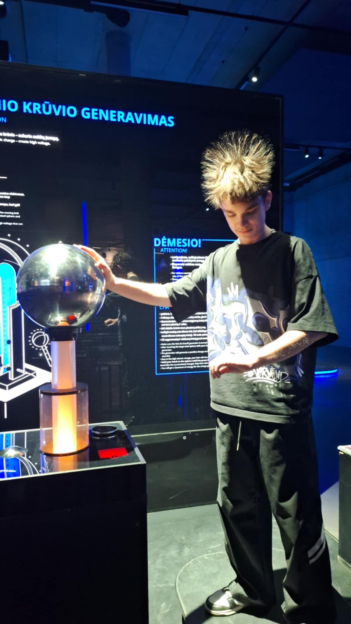 Balandžio 15 d. 8 klasės mokiniai su fizikos mokytoja S. Žukauskiene vyko į Vilnių. Iš pradžių užlipome į Gedimino pilies kalną, pasivaikščiojome ir pasigrožėjome Vilniaus vaizdais (panorama), taip pat prisiminėme Gedimino pilies istoriją. Tuomet nuėjome į Energetikos ir technikos muziejų kuriame galėjome pamatyti „Katilų salę“, „Turbinų salę“, „Veidrodžių kambarį“ ir t. t. Muziejuje išbandėme fizikos dėsnius, jų taikymą, pvz: gravitaciją, inerciją, svertus, elektrinį laidumą. Pasižvalgę ir išbandę, nuėjome į „Virsmų salę“, ten galėjome pabandyti sukurti su tam tikrais prietaisais „Energijos gamybą“, „Energijos vartojimą“, „Energijos kaupimą ir perdavimą“. Pamatėme milžinišką Tesla ritę. Verta apsilankyti ir viską pamatyti!