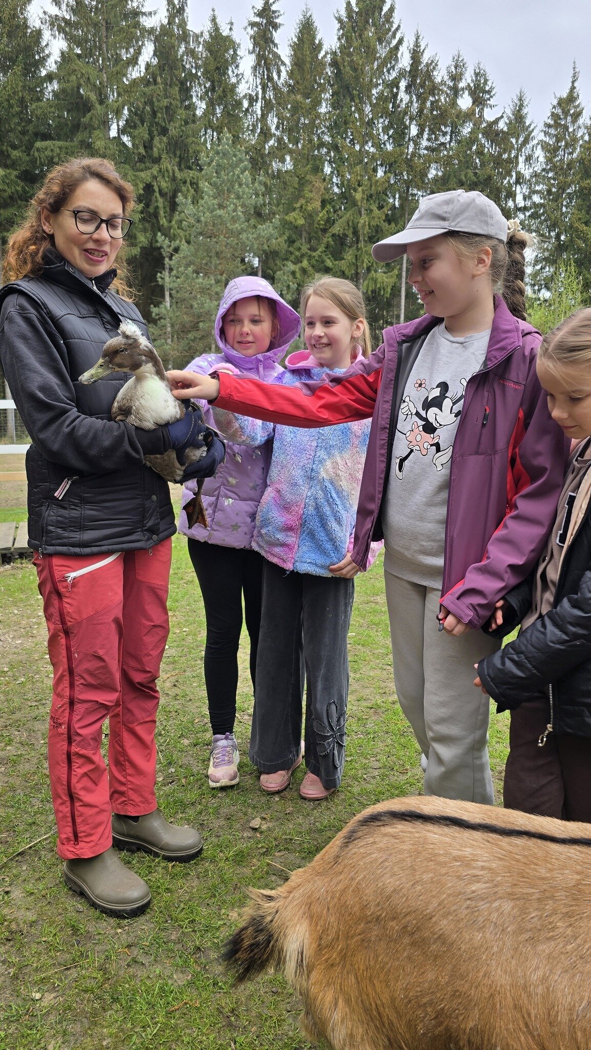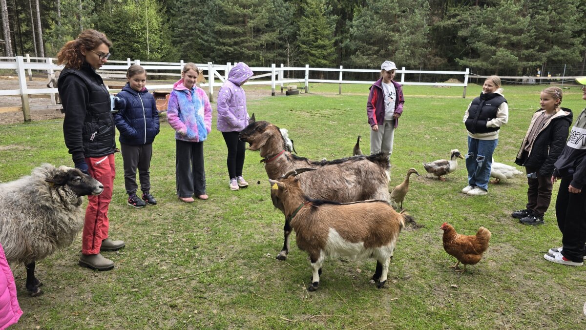 Svetingoji šeimininkė Danuta mūsų mokinukams padovanojo nuostabią edukaciją apie gyvūnus. Tai buvo ne tik smagus, bet ir labai naudingas laikas. Vaikai turėjo unikalią galimybę iš arti susipažinti su įvairiais ūkio gyvūnais: pamatyti pūkuotus triušius, draugiškas ožkas, avis, didingus arklius ir kitus šaunius ir labai draugiškus ūkio gyvūnus. Patys mažiausi pirmą kartą išbandė savo galimybes jodami poniu vardu Šrekas.