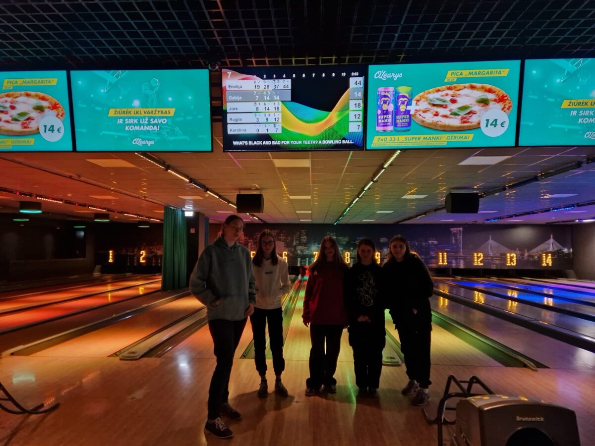 Pabuvę patys archeologais, pakasinėję ,,kultūrinius sluoksnius“, nuvykome papramogauti – pažaisti populiariausio žaidimo pasaulyje –boulingo ,,O,Learys“ pramogų centre.