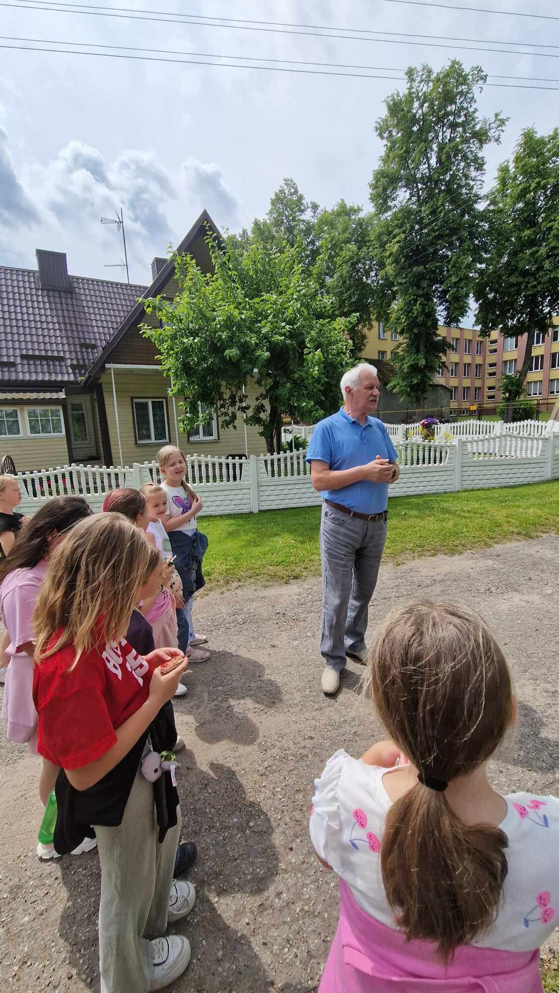 Vaikai atrado panašumų, lygino išgirstą informaciją su žinomais dalykais apie gimtuosius Žaslius. Miestelyje įamžintas žymaus žemiečio, Veisiejų garbės piliečio, poeto Sigito Gedos atminimas. Vaikščiojome jo vardo gatve. Matėme gimnaziją, kurioje jis mokėsi.