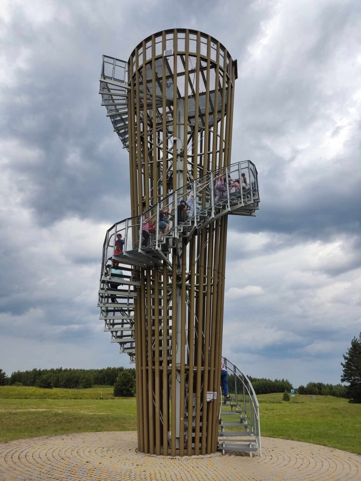Kelionę baigėme lipdami į apžvalgos bokštą. Iš 15 metrų aukščio matėsi trys Ančios ežero salos, o iš kitos pusės atsivėrė Veisiejų panorama.