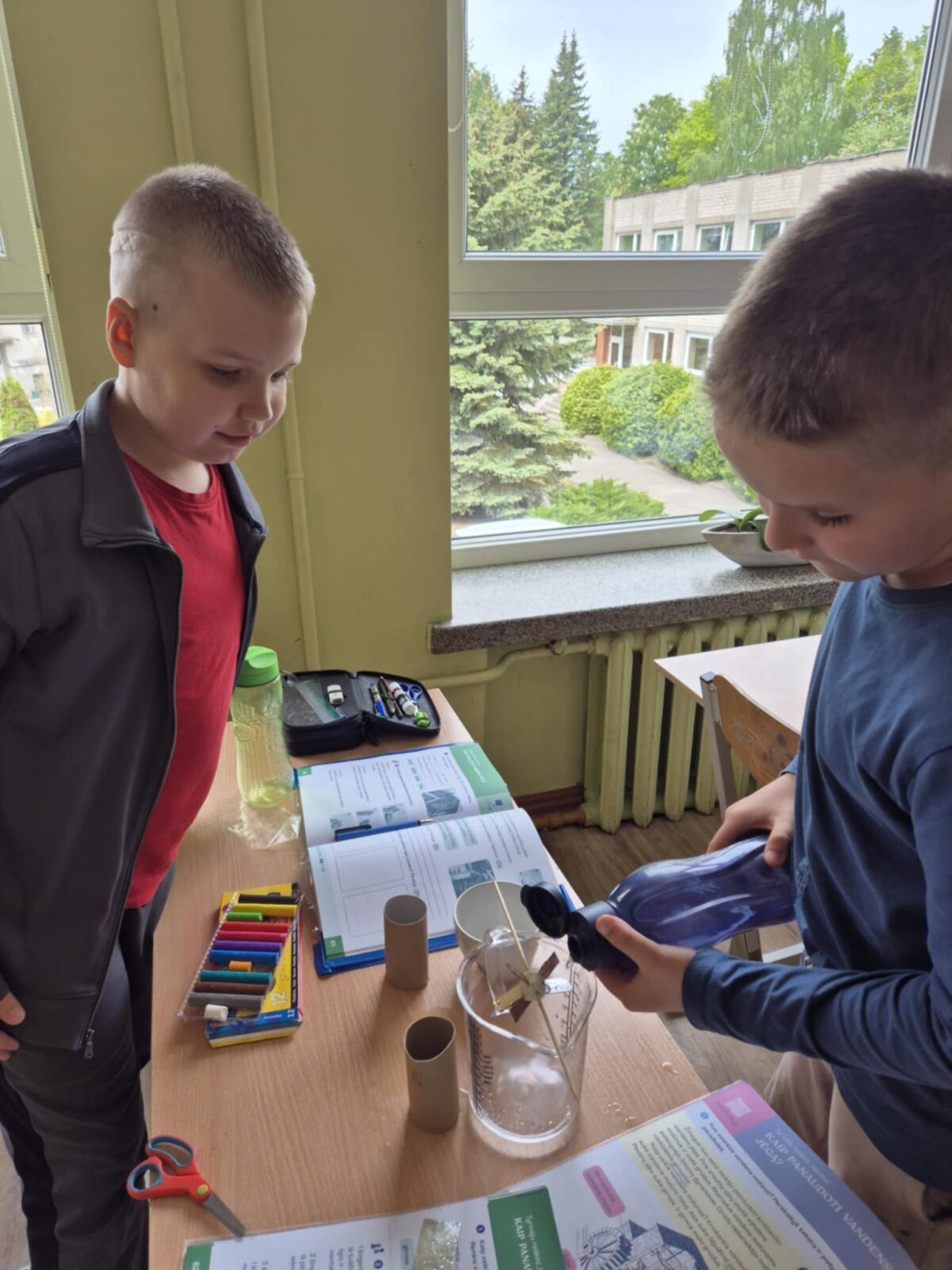 Paskutines mokslo metų savaites antrokai tyrinėja vandens fenomeną. Gegužės 29 dieną mus maloniai priėmė ir apie vandens kelią iš požemio upių iki namų čiaupų papasakojo UAB „Kaišiadorių vandenys“ direktorius Rolandas Zazerskis. Vaikai ne tik išgirdo pasakojimą, bet ir apžiūrėjo įmonės įrenginius, o išsprendę sunkias matematines užduotis, prizų gavo. Grįžę dar ir vandens malūną pasigaminom.