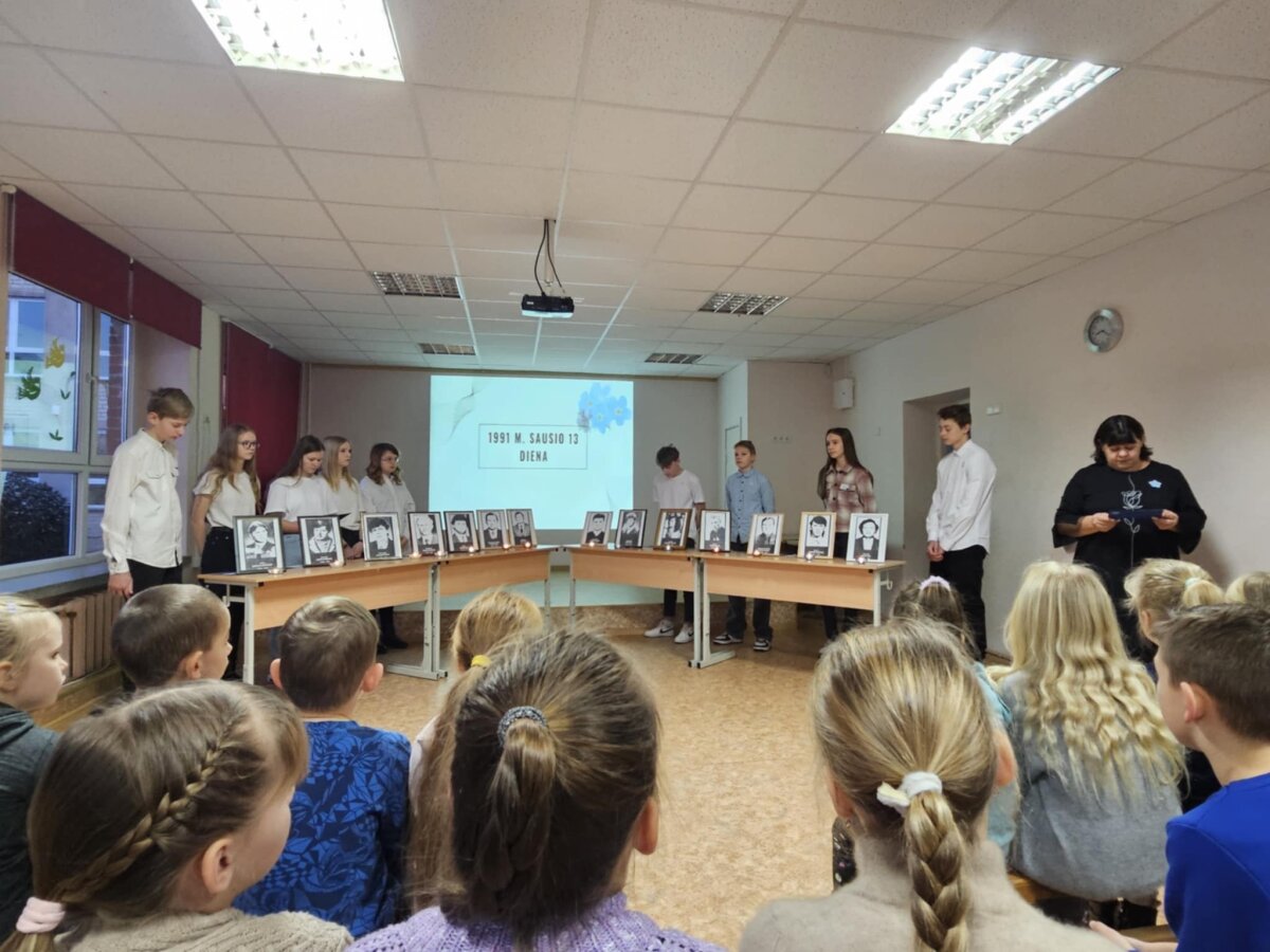 Sausio 13-ąją, kaip ir kiekvienais metais, mūsų mokyklos languose ir vėl sužibo žvakių šviesa. Šiandien prisijungėme prie visos Lietuvos ir pagerbėme žuvusius už Tėvynę. 7 klasės mokiniai skaitė jautrius eilėraščius, dalijosi kraštiečių prisiminimais apie tą lemtingąją dieną. Savo prisiminimais apie neramią sausio 13 - osios dieną su visais pasidalino ir pradinių klasių mokytojos Laimutė ir Odilija. Renginio metu buvo akcentuota laisvės svarba ir kvietimas nepamiršti tų, kurie kovojo už mūsų nepriklausomybę.