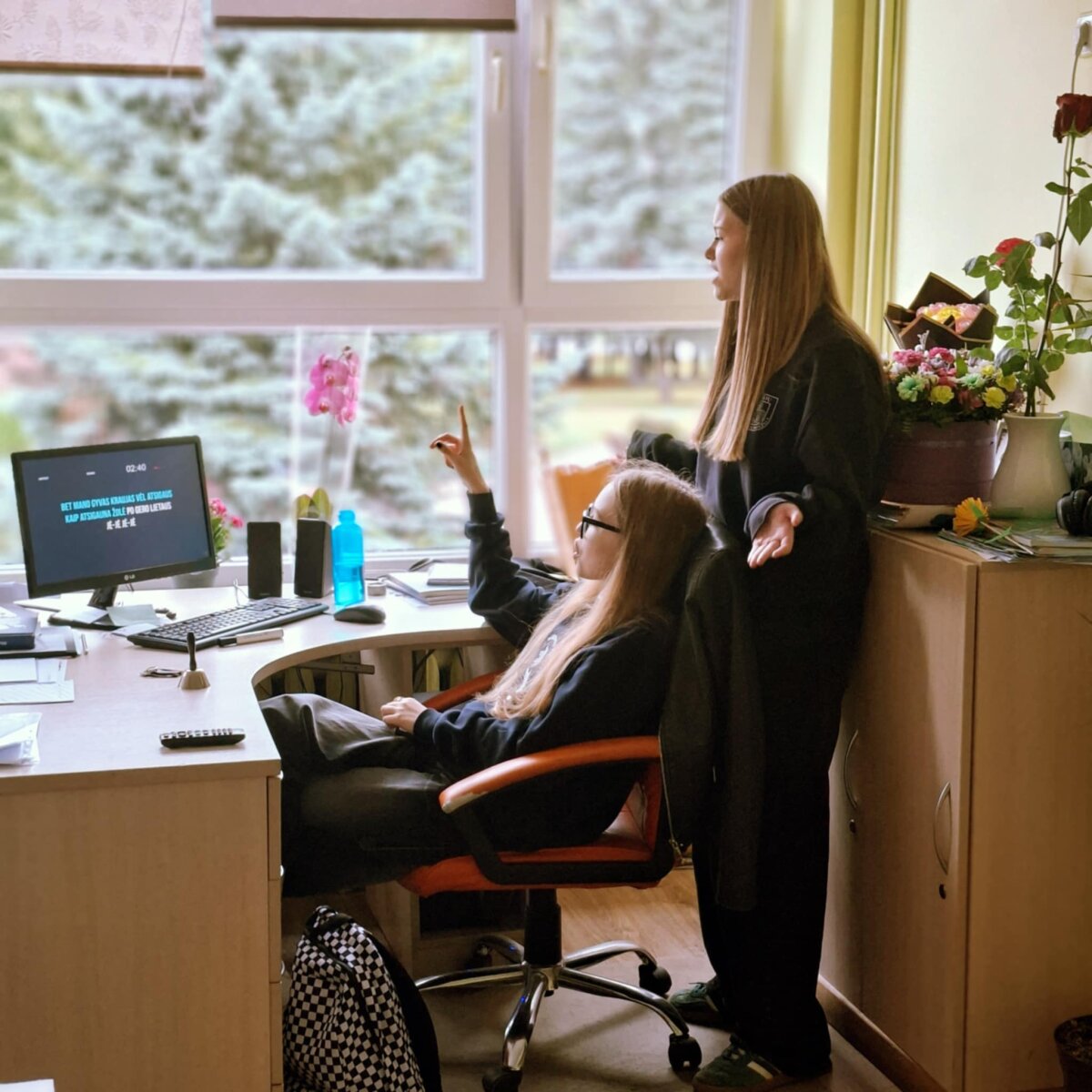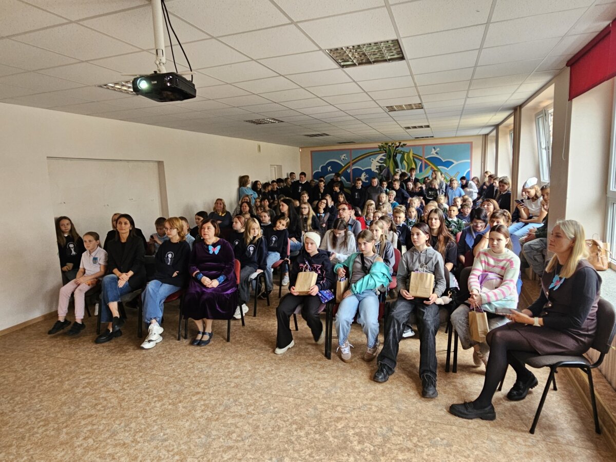 Spalio 6-ąją mūsų mokykloje sklandė ne tik šypsenos, bet ir daugybė simbolinių drugelių, tapusių šventės akcentu. Mokinių taryba šiai dienai ruošėsi iš anksto – papuošė mokyklos erdves spalvingais drugeliais, o mokytojų kambaryje kiekvieno pedagogo laukė vardinis drugelis su šiltu palinkėjimu. Mokiniai sukūrė ir fotosienelę su drugeliais, prie kurios visi norintys galėjo įamžinti.