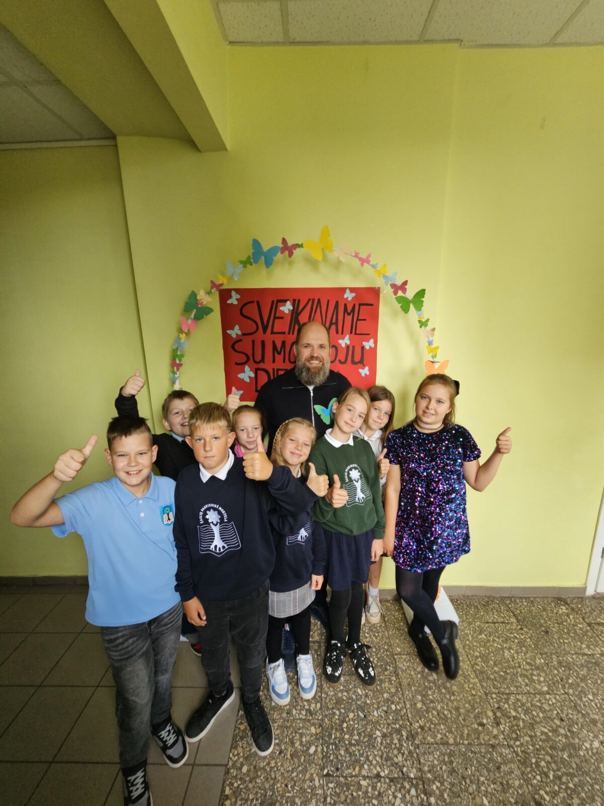 Šventėje svečiavosi ir svečių delegacija iš Latvijos, Tirzos pagrindinės mokyklos, atvykusi pagal „Erasmus+“ projektą. Jie apžiūrėjo mokyklos erdves, susipažino su mūsų mokyklos bendruomene ir kartu dalyvavo šventėje. Ši diena, kupina simbolinių drugelių – tarsi laisvės, kūrybiškumo ir įkvėpimo ženklas.