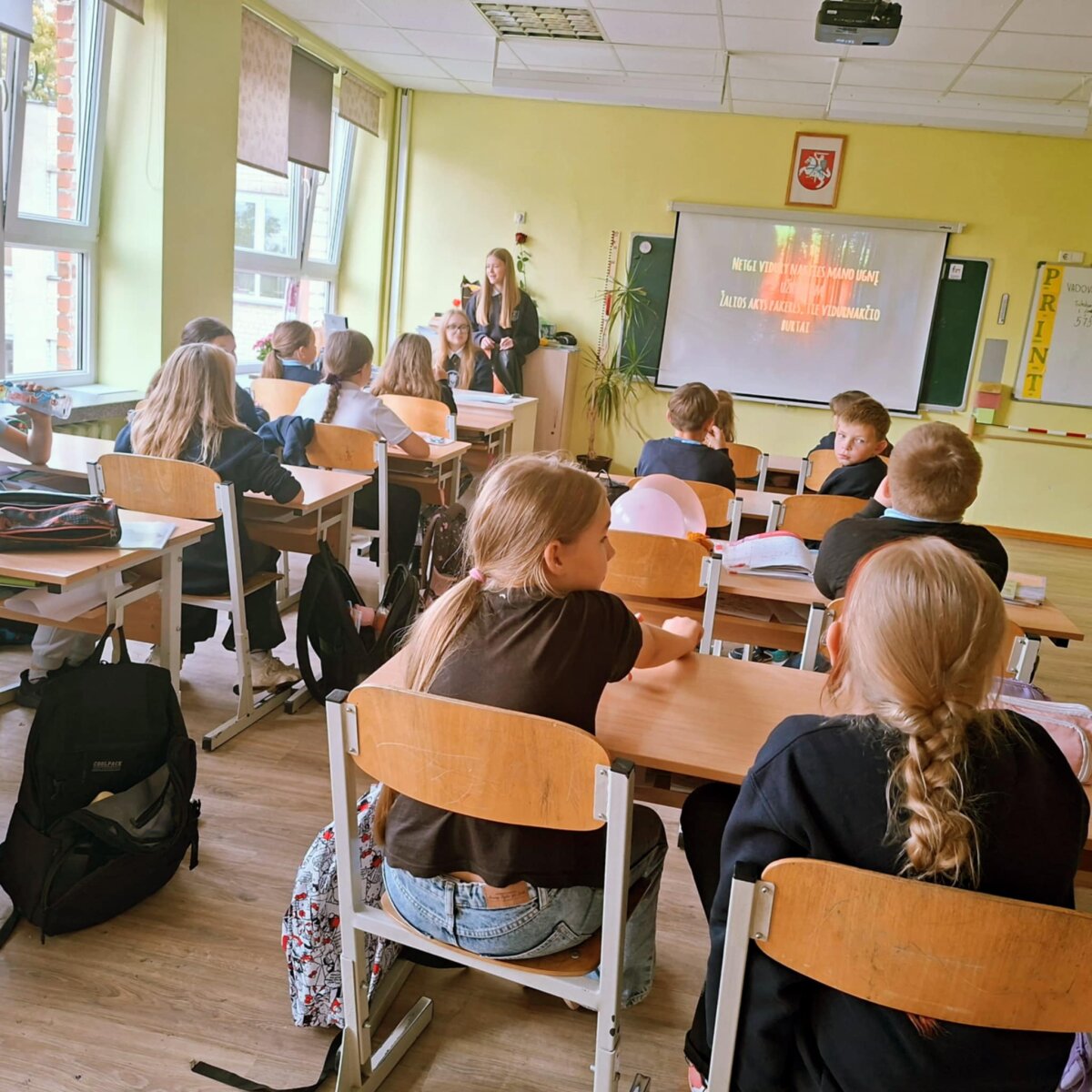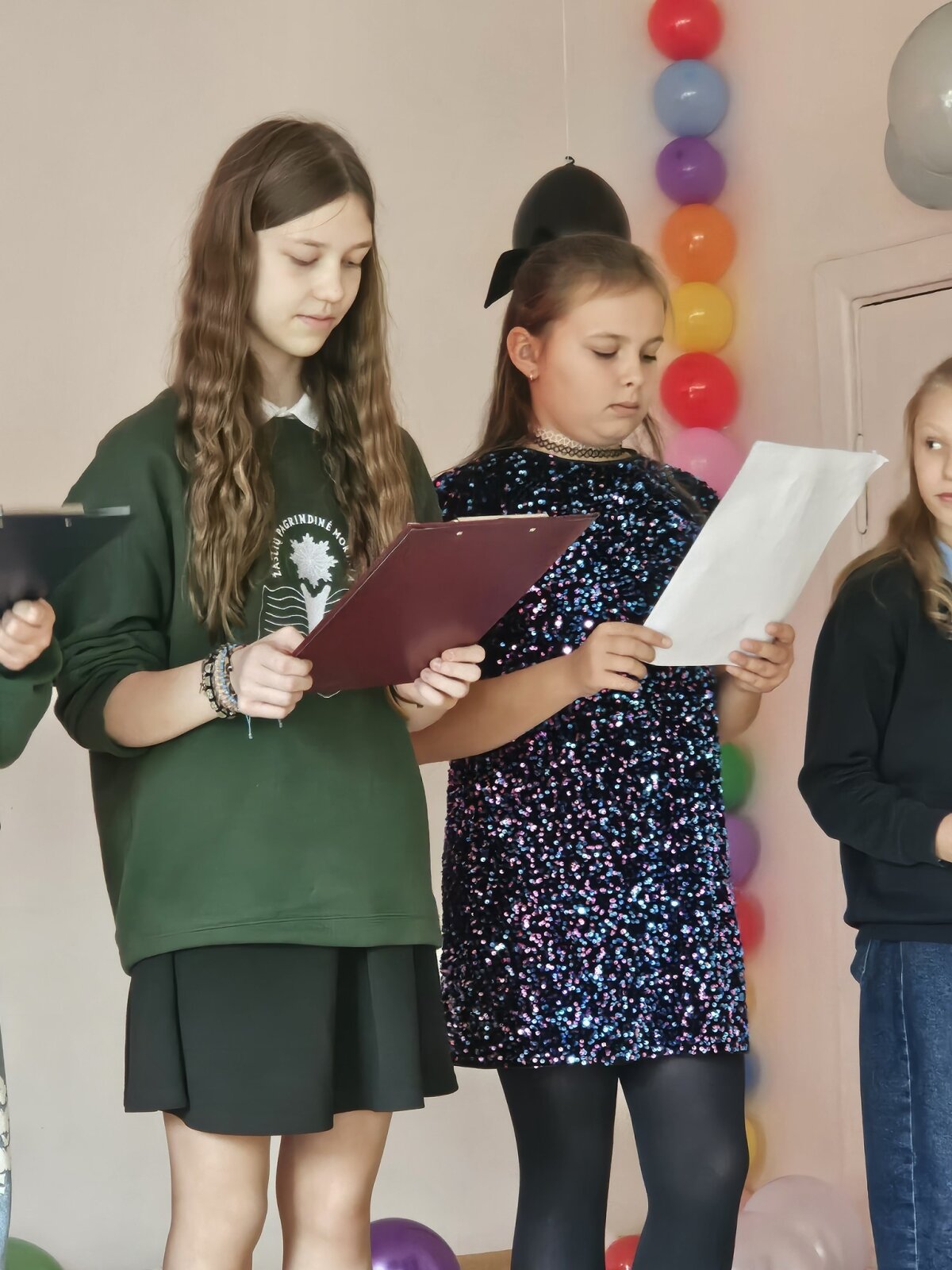 Ačiū visiems, kurie prisidėjo prie šios gražios dienos – mokiniams, mokytojams, svečiams ir visai bendruomenei! Ypač dėkojame šventės vedėjams ir Mokinių tarybos lyderiams: Osvaldui Barstekai ir Modestai Šliumbaitei!